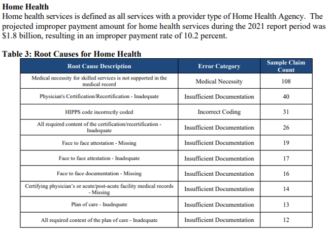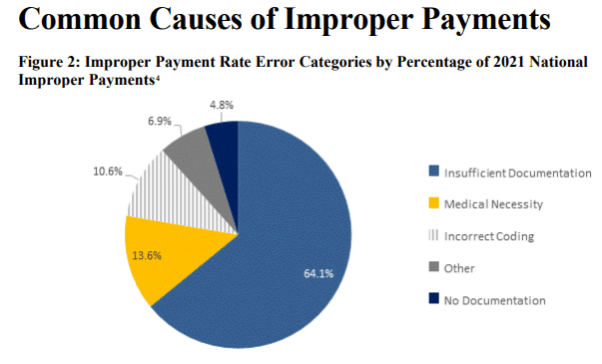 Keep reading and you’ll see information as to amounts overpaid to individual states. Beyond the initial 7 pages, the report contains lots of tables. It’s a good reminder that documentation must be accurate, complete and reflective of medical necessity.