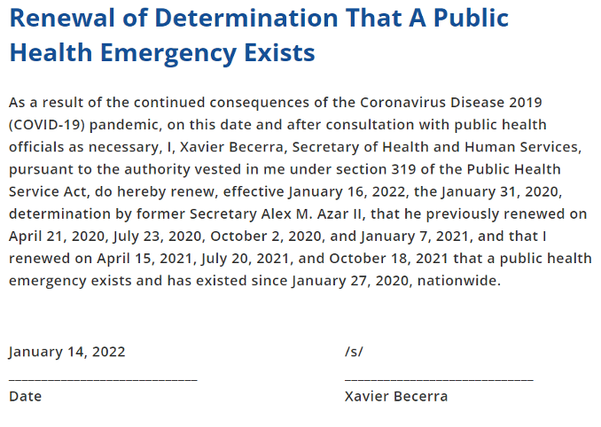 One thought on “Renewal of Determination That A Public Health Emergency Exists”