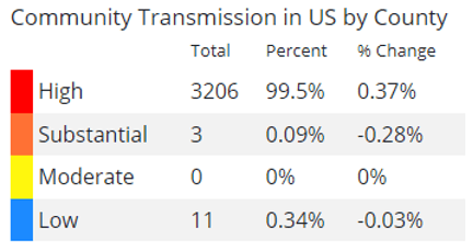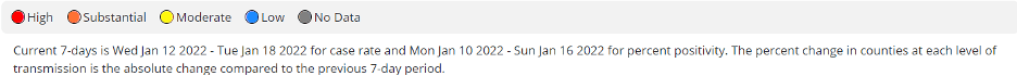 The CDC COVID Data Tracker shows community transmission levels as of Sunday, January 16, 2022: