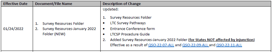 - Revision History for LTC Survey Process Documents and Files Updated 01/25/2022