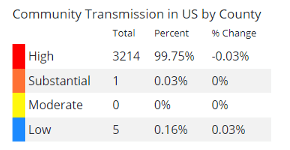 The CDC COVID Data Tracker shows community transmission levels as of Thursday, January 27, 2022: