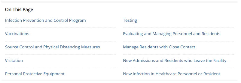 In case you missed this link in my blog following the National NH Stakeholder call a couple of days ago, this updated guidance merits your attention and action as well. It’s the last link within the Interim Infection Prevention and Control Recommendations for Healthcare Personnel During the Coronavirus Disease 2019 (COVID-19) Pandemic guidance and it’s considered a supplement specifically for NHs and LTCFs in addition to the other 2 hyperlinks. There’s a lot of links to access within the updated IPCs.