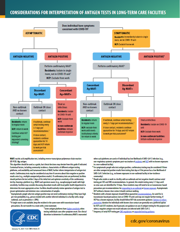 Consideration for Interpretation of Antigen Tests in Long-Term Care Facilitiesis a helpful algorithm provided by CDC on January 15, 2021.