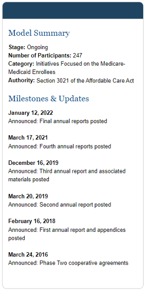 This Initiative is possible through the collaboration of the CMS Innovation Center and the CMS Medicare-Medicaid Coordination Office.