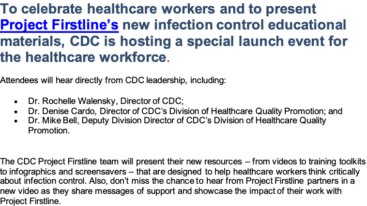CDC’s Project Firstline for Healthcare Workers – Upcoming Event March 2, 2022March 2, 2022 Posted in WEBINARS Mary Madison, RN, RAC-CT, CDPClinical Consultant – Briggs Healthcare Register HERE for this event. Share this: Click to share on X (Opens in new window) X Click to share on Facebook (Opens in new window) Facebook Click to share on LinkedIn (Opens in new window) LinkedIn Click to email a link to a friend (Opens in new window) Email Like Loading...