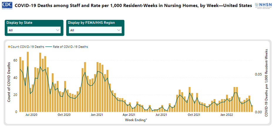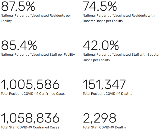 Lastly, the NHSN Nursing Home Covid-19 Data Dashboard provides this data as of March 14, 2022, at 5:30am ET: