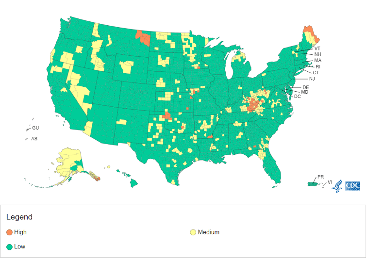 Here’s the U.S. COVID-19 Community Levels by County Map date as posted March 17, 2022: