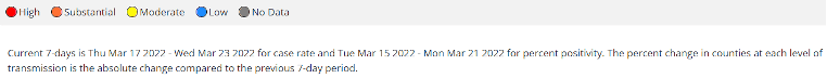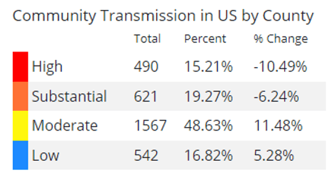 The CDC COVID Data Tracker shows these current community transmission levels: