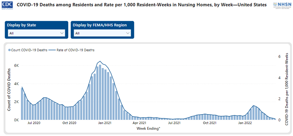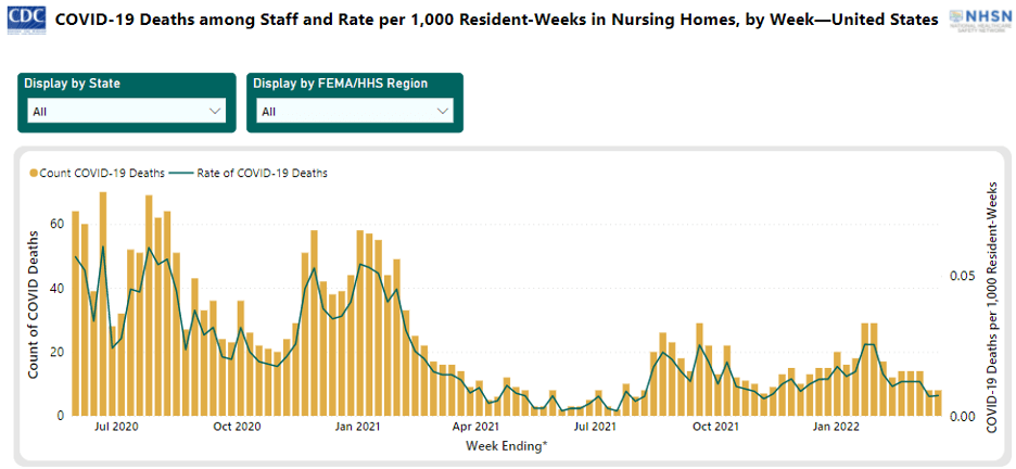 Lastly, the NHSN Nursing Home Covid-19 Data Dashboard provides this data as of March 21, 2022, at 5:30am ET: