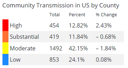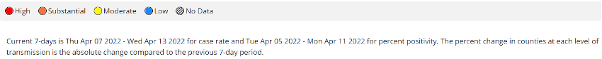 Below was the previous week’s (March 27, 2022) – note the level of increase in counties with high and substantial community transmission: