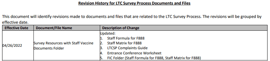 CMS posted these updates to the LTC Survey Process, dated April 26, 2022: