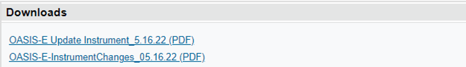 The OASIS-E Instrument Changes document (2-pages in length) provides the changes since the February 1, 2022 posting. The direct link to that document is found here.