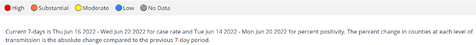 The CDC COVID Data Tracker shows these current community transmission levels as of June 20, 2022: