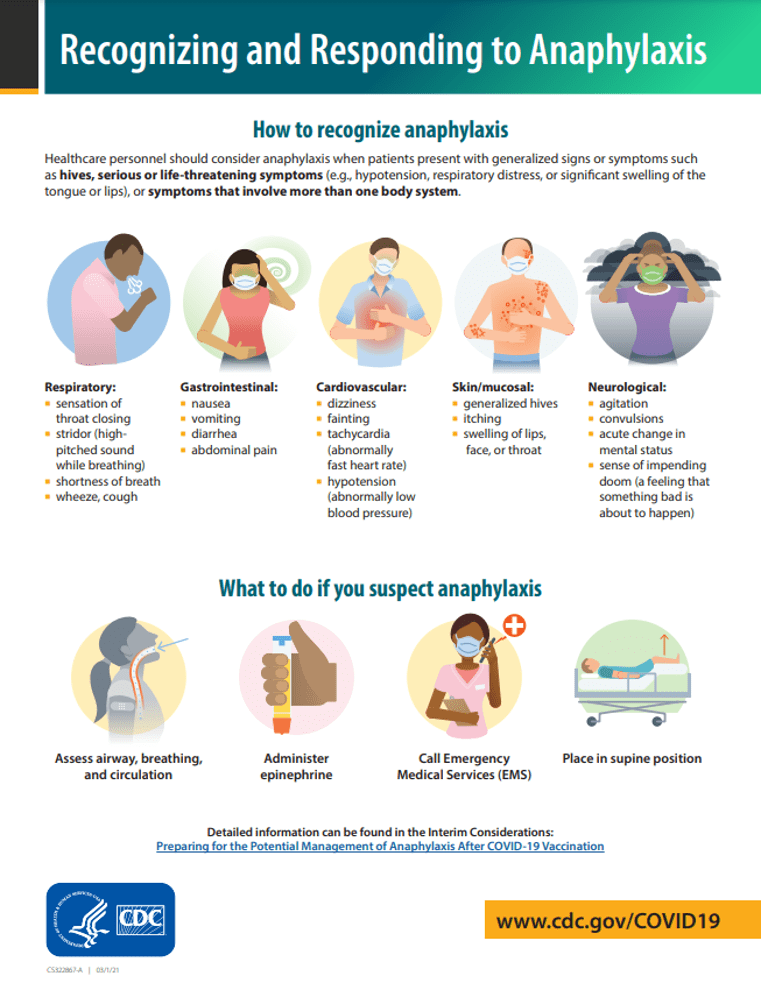 An infographic – Recognizing and Responding to Anaphylaxis is also available on this same website: