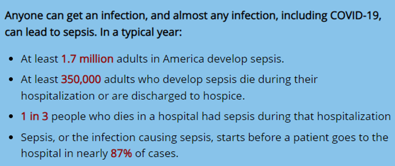 Yesterday (Tuesday, September 13, 2022) was World Sepsis Day. Here’s some information from the CDC on this very important topic: