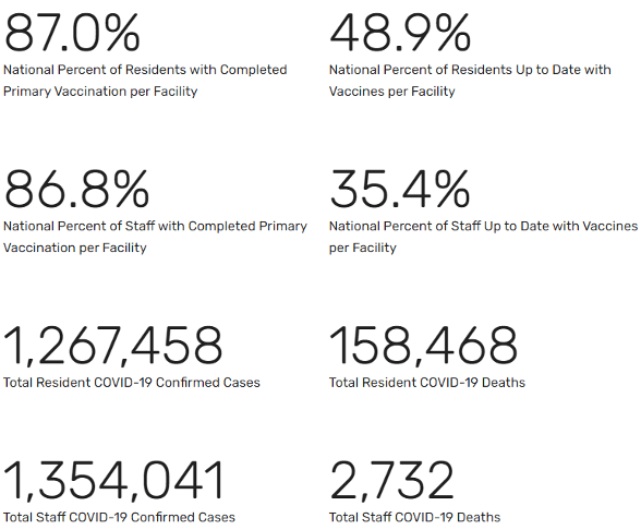 As I say every week with this report, please continue your efforts to educate staff, residents and families about the life-saving benefits of the primary vaccinations as well as the importance of getting the booster – now the bivalent booster.