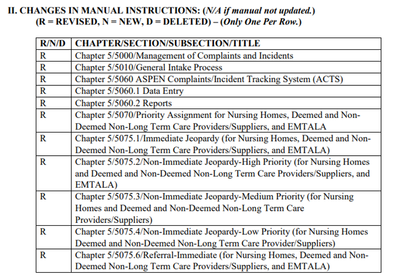 Subscribers to Briggs Product #1766 – Survey Guide: Interpretive Guidelines for Long-Term Care or Product #1766E – Survey Guide: Interpretive Guidelines for Long-Term Care – eManual will receive these updates as soon as they are processed. We’re working on those updates now.