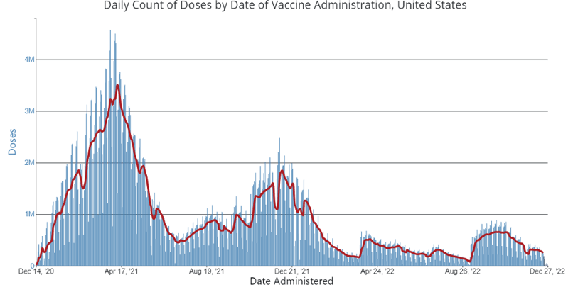 The chart below is found on the CDC Trends in Number of COVID-19 Vaccinations in the US website.