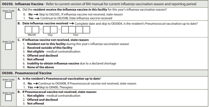 This COVID-19 vaccination item does not currently exist on the IRF-PAI, LTCH nor SNF item sets but would be added to each item set – the discharge assessment – to capture this information. Below is the vaccine data currently collected: