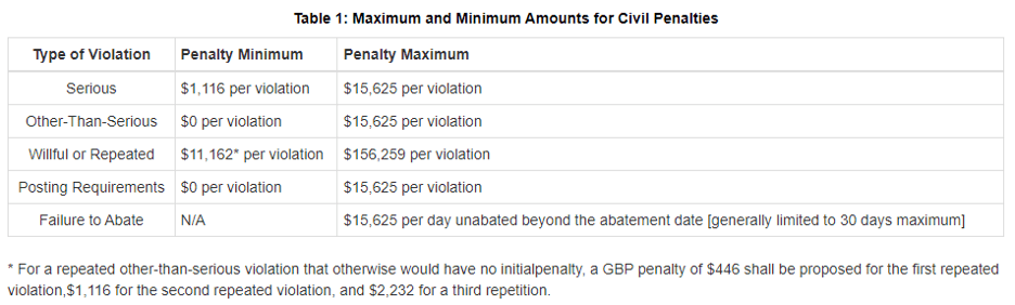 Table 1 summarizes the minimum and maximum amounts for proposed civil penalties: