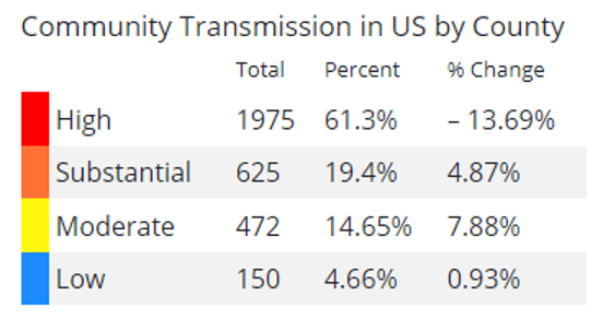 The CDC COVID Data Tracker shows these current community transmission levels as of January 18, 2023: