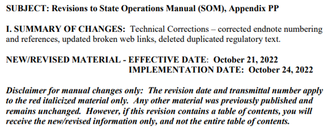 One thought on “Revisions to Appendix PP – State Operations Manual (SOM)”