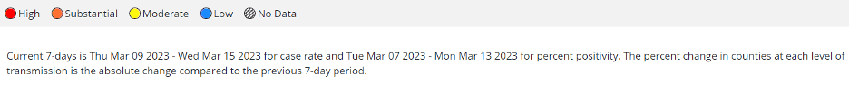 The CDC COVID Data Tracker shows these current community transmission levels as of March 13, 2023: