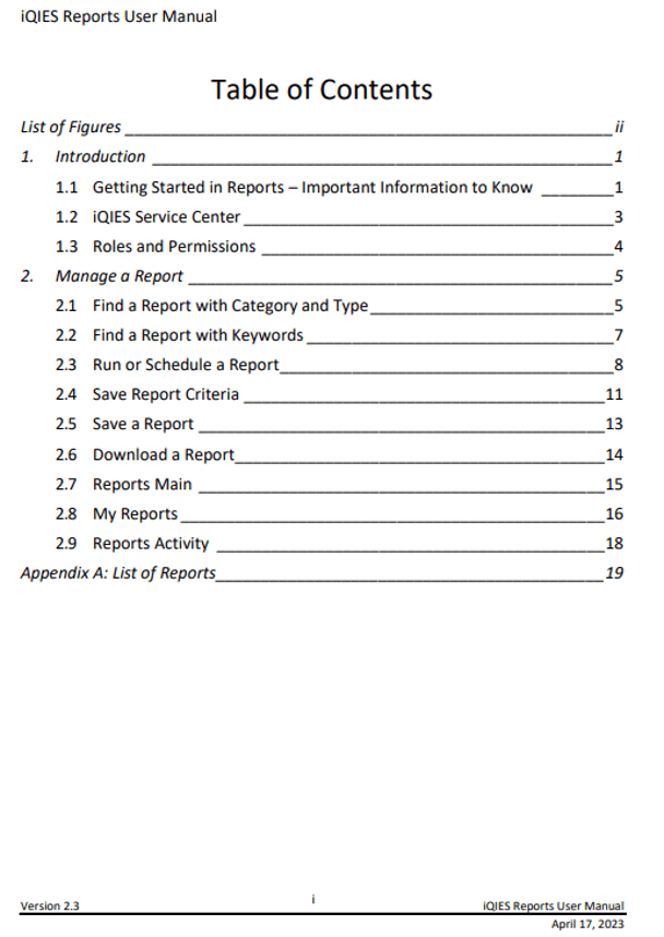The CMS iQIES Reports User Manual v2.3 is the most recent update to these manuals with the date of April 17, 2023. April 17, 2023 is the date that LTC providers began using iQIES for transmitting MDS and accessing reports. (The previous ASAP system was retired the previous week.)