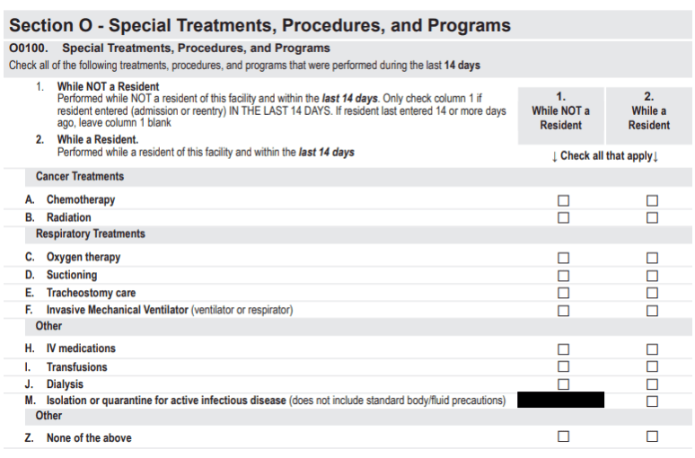 The OSA Item Set is 20 pages in length and includes an abbreviated Sections G, I and O (Special Treatments):