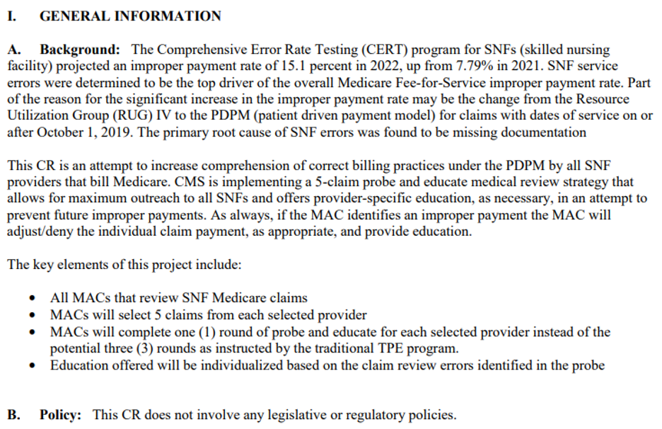 One thought on “Skilled Nursing Facility (SNF) 5-Claim Probe and Educate Review Clarified ”