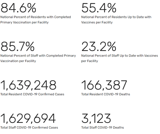 Be sure to review your facility’s vaccination rates on the list of every nursing home with recent resident and staff vaccination rates and other pertinent data as this data will be used for completing the COVID-19 Matrix during survey. State surveyors look at this data in preparation for your survey. You’ll also need to know your current rate (as reported to NHSN) and provide it to the survey team entering your facility. This data is current as of the week ending May 21, 2023.