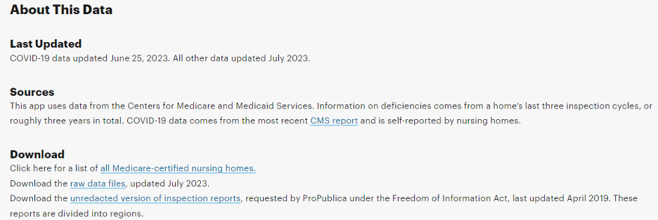“ProPublica has updated “Nursing Home Inspect,” our database that helps you find problems that inspectors identified in more than 15,000 U.S. nursing homes, to make it easier to search government reports and browse serious issues. We’ve added new data, a redesigned user interface and advanced search features.