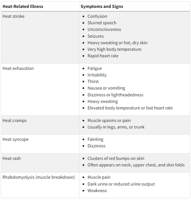 Know the signs of heat illness and how to respond